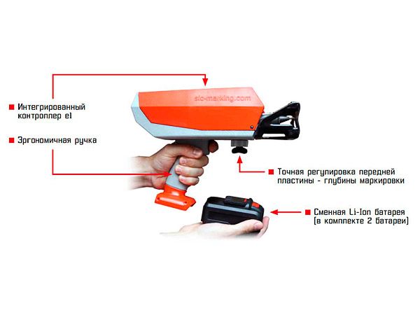Контроллер и маркирующий механизм объединены в едином эргономичном и прочном корпусе. Аппарат оснащен аккумулятором, не требует подключения к сети питания, с ним можно абсолютно свободно перемещаться по производству. Маркировочное окно 60х25 мм.